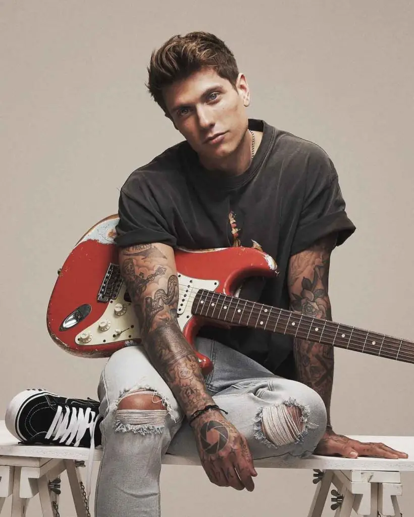 Benjamin Mascolo stands at a height of 1.75 m i.e. 5 feet and 9 inches tall. He has a bodyweight of 150 lbs i.e. 68 kg. He has an athletic body build. His hair color is blonde and he often dyes his hair in different colors. His eye color is blue. His sexual orientation is straight. He has numerous tattoos on his body.